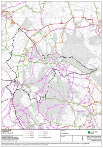 Two maps cover our parish giving road and footpath identification numbers, very helpful if reporting a concern about a footpath or road. Dormington and Mordiford Parishes are outlined in black on the maps.